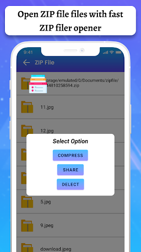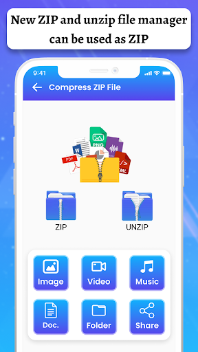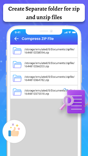 Compress ZIP File app is a simple zip file compressor app with a RAR file extractor. It can easily find all files, all images, and documents with the zip file open app.