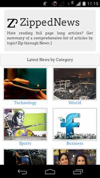 Zipped News - http://www.zippednews.com - is your personal magazine for news. it’s a single place to keep up on the news, and read lots of stuff quickly by browsing through summaries. Its a collection of content categorized by topic. You can discover news articles by your interest. If you are too bored reading long articles from content aggregators which serve as news apps / news magazines / newsstand, give Zipped News a shot. It has news articles and editorial content organised in sections as Technology, Sports, Science, Health, World, Business, Entertainment and Politics. Also you can search for articles on any topic and quickly zip through summaries of news articles and editorial content on that topic. So well organised news content with machine generated short summaries of articles.