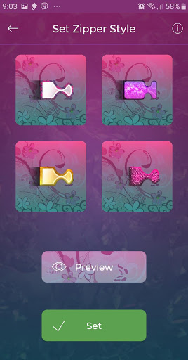 🦩 Each time you modify something you can click the "Preview" button to see how it will look once the zipper lock app Girly Zipper Lock Screen is activated and to fine tune the girly zipper design. 🌷 This zipper app is perfect for everyone who likes their phone to be unique.✨ Girly zipper screen lock comes up with super cool high definition graphics. 👗Users can also enable/disable the locker from the settings menu. 💄