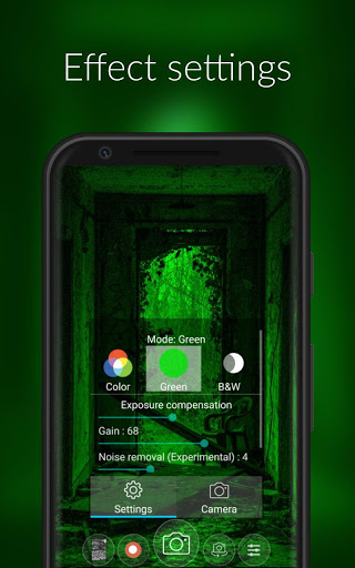 The Night Vision Camera app takes real pictures and videos at the lowest luminosity without any additional appliances. App will digitally amplify the slightest light beam reaching the camera of your device trying to simulate the real night vision goggles functionality.