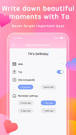 Love in Time-Love Record App is a couple software that will solve these problems for you. This is a love software designed for couples to maintain intimate relationships. Regardless of whether it is a couple or a couple, the love record maintains the intimacy of your affection, counts the number of days in love, reminds you of anniversaries, and records the beautiful things for you. Help you create an exclusive space for your lovers during your passionate love period.