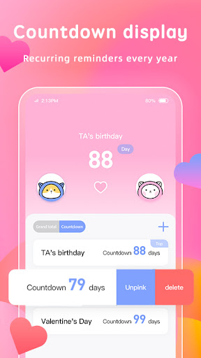 2. Anniversary: Remind every special anniversary and display it in the form of a countdown day;