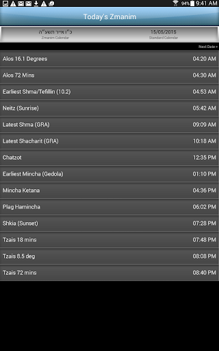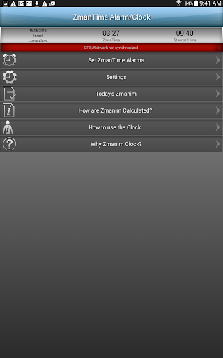 The Zmantime Alarm Clock app is a world first - a clear and well-designed sha'ot zmaniot (Jewish halachic time) alarm clock, with home screen widget to show the time in halachic time (what we've called ZmanTime) AND the ability to set alarms based on the shaot zmaniot time so that you never miss a zman again whether at home traveling or when the clocks change.