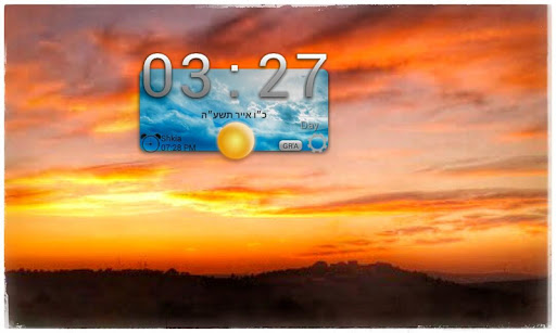 ** Clear home-screen Sha'ot Zmaniot clock widget to view Jewish time, in real-time (NOTE: due to an android limitation on loading widgets from external storage (e.g. SD card), please ensure the app is installed on Internal Storage for the widget to function properly.