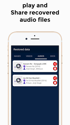 it is very easy to use Just click the Scan Button and start scanning for your deleted photos, videos , audios and documents just some seconds all your deleted photos, videos, audios and documents will be recovered, you can view all your recovered data save them to gallery or share them to Social Media to friends and family.