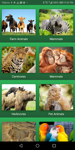 is an application build with purpose to help you easy learn the animals, birds, insects, reptiles, water animals and moreover dinosaur names and recognize them by their sounds. This application includes more than 200 animals, divided by categories.