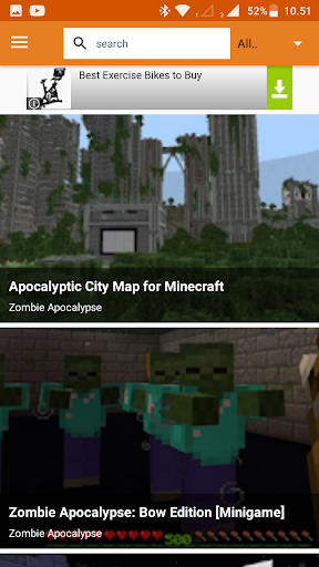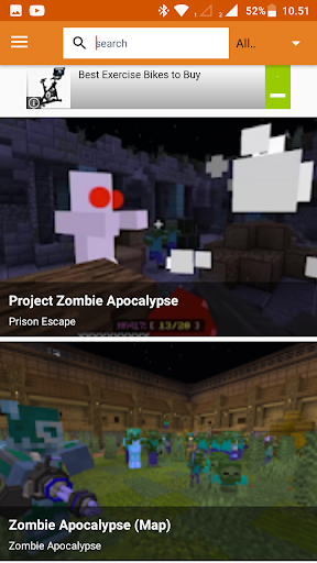The application has a large selection of categories, such as: Adventure, Creative, Minigame, Parkour, Puzzles, PvP, Survival and Redstone!