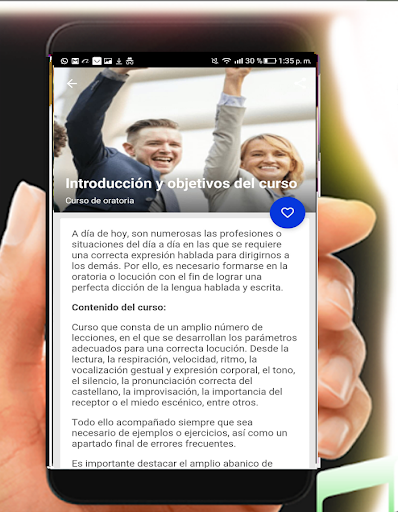 En este curso aprenderás a como hablar en publico, si te asusta es normal todos en su momento sentimos miedo al hablar en publico, el miedo se traduce en piernas temblando, hablar un poco nervioso, todo eso tiene solución, prueba descargar la aplicación ahora.