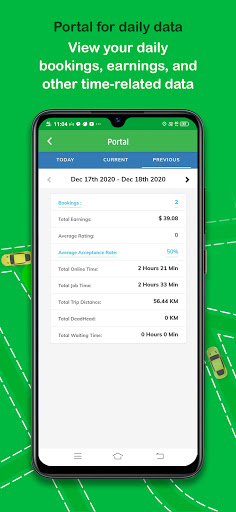 • Portal: This section shows the total number of bookings, total earnings, the average rating, and other time-related data on a particular day.