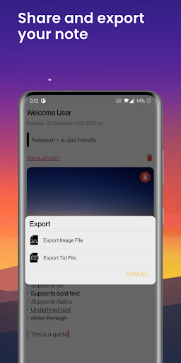 Notepad is a simple and awesome notepad app. It gives you a quick and simple notepad editing experience when you write notes, memos, e-mails, messages, shopping lists and to-do lists. Taking notes with Notepad is easier than any other notepad or memo pad app.