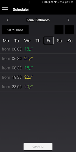 The easy interface allows you to select a weekly schedule profile, view statistics, and control your radiator or towel rail with quick settings.