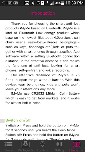 1.two way anti-loss, you can use mobile phone to find the device, you can also use device to find mobile phone