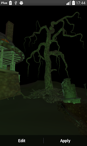 Do you like Halloween? If so, this wallpaper is for you. Feel the Halloween mood by setting in your phone wallpaper with a Halloween theme. Change the desktop of your phone into a scary house, decorated with pumpkins, grave and scary trees. Wallpaper is, fully 3D, that's why touching the screen and moving your finger will change the view of camera.