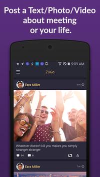 * Creating a meeting plan(Match, Party, Dating, etc) based on nearby location, Joining into a meeting and Having an real meeting with Zugo Social users.