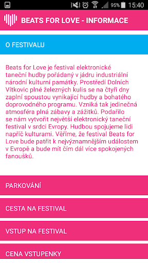 Beats for Love es un nuevo concepto de un festival electrónico ubicado en el centro histórico del Dolní Vítkovice.El entorno de hierro completo junto con la música y la actividad no hospitalaria ofrece a los visitantes. Completos opciones de entretenimiento.