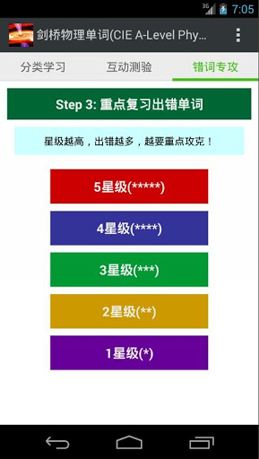 3) Word Review: Here you can retrieve all he terms at different star levels and review them accordingly. Apparently, the higher the star level, the more urgent you need to review as early as possible, so that you can manage to spend your time more efficiently. When you are confident with the starred words, you can delete them from the backend database.