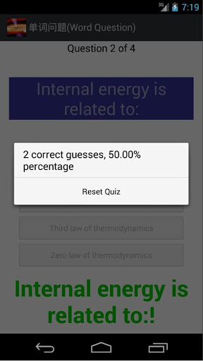 2) Interactive Quiz: by selecting a specific topic, you can start the corresponding quiz and finally obtain a statistical summary for the quiz. During the quiz, whenever you fail in any question, the corresponding term is stored in a backend database, together with a star level which reflects how many times you failed to give the correct answer. This information will be used in Tab 3 (see next) to assist you determine your weakness in your study. Please note that the highest star level is 5.