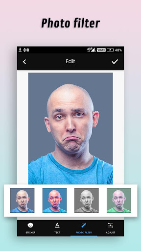 - Apply stickers from the sticker section to make dynamic interactions via making the bald photo montages more expressive.