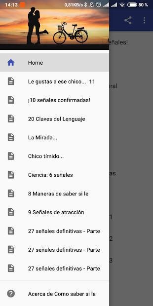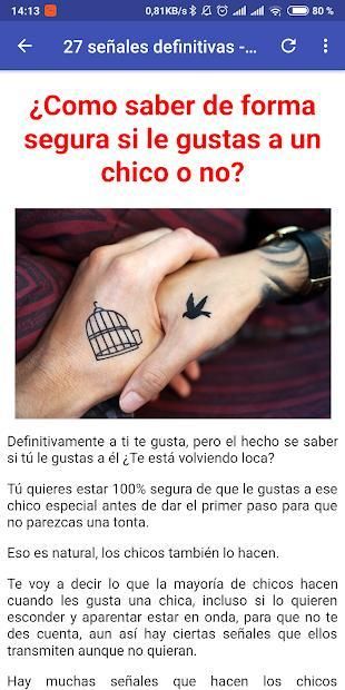Sometimes it's difficult to know if a guy likes you (or how to know if a girl likes you anyway) that's why this app is designed for you. Read about the number of signs that will betray him ... :)