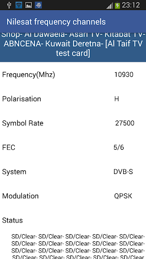 • Detailed informations for each channel ( Freqency - Polarisation - SR -FEC -Modulation -System -Channel status(SD or HD/encrypted or Clear).)