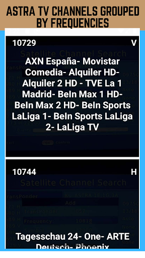 With ASTRA TV and Radio Infos application get all Astra tv and radio channel frequencies