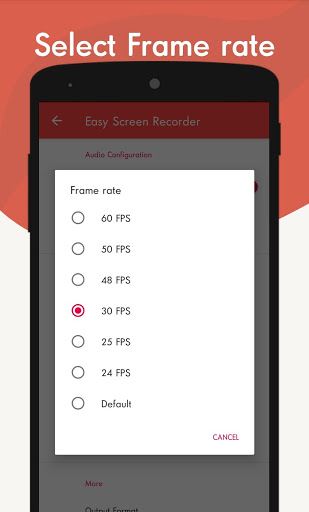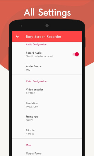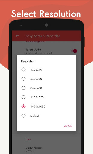 Easy Screen Video Recorder - supports recording game screen in the highest quality, 1080p, 12Mbps, 60FPS. Of course, you can record screen with adjustable resolution(240p to 1080p), quality, and FPS(15FPS to 60FPS).