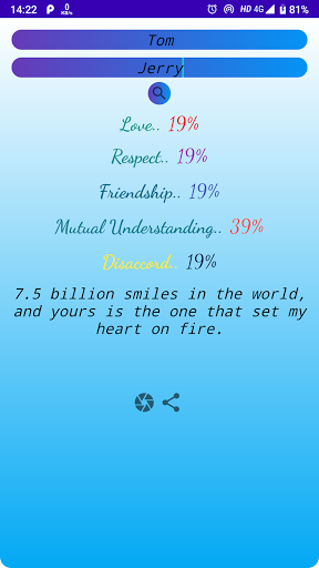 Simply enter your name and your Friend’s/Lover’s/Relative’s name and calculate the percentage of respect.