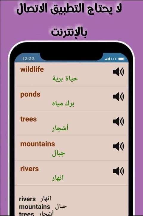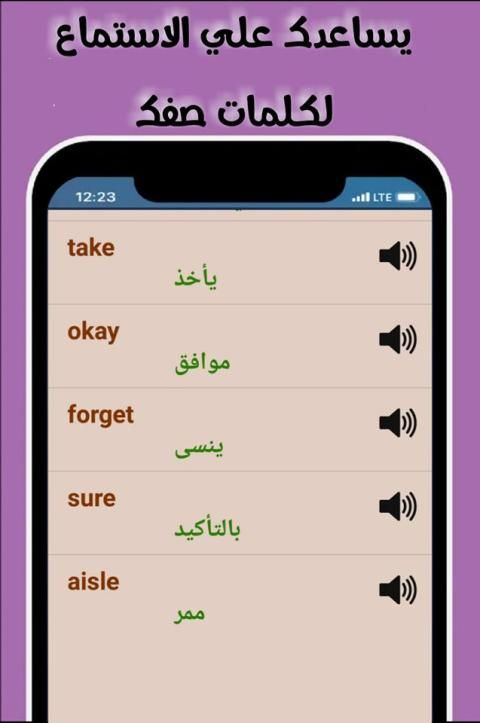 - يمكنك من تعلم اللغة الانجليزية بالصوت والتمرن على الهجاءعن طريق الاستماع والترجمة تستطيع نطق الكلمات بسهولة