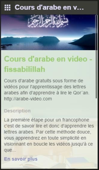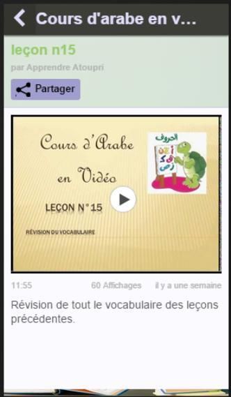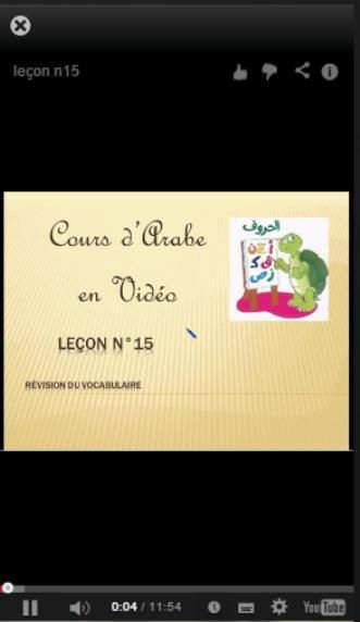 Each video covers letters with an increasing level of difficulty. As with a home teacher, you have dictated, the possibility also upload documents to practice writing, learning vocabulary and finally reading in particular that of the Quran. If you are diligent and regular in the late 16 videos you'll read insha'Allah.