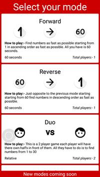 Check how intelligent your brain is, all a player has to to do is to find number from 1 to 60 sequentially as fast as possible while you are looking for a number you are not only finding that number but certain numbers greater than that