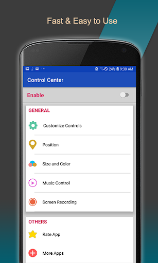 if you want a single screen to control most of your phone features, then control center is a perfect match for you. control center gives you the feel of iphone on android. it gives the convenience of assistive touch like iphone.