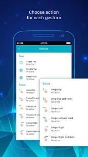swipe up - swipe up and hold, lay left - swipe left and right, swipe right - swipe right and hold, touch once and hold. Each gesture you can assign a corresponding option
