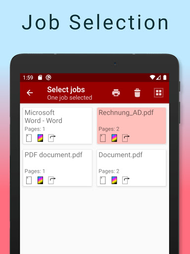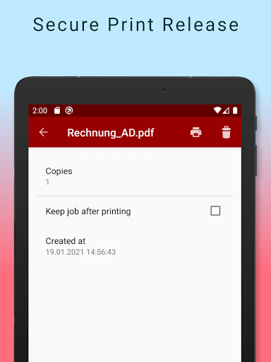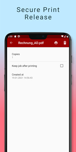 Use the Mobile Printing Solution App to release your private print jobs that are spooled on an Mobile Printing Solution server to any printer or multifunctional inside your organisation. This App is free but it requires an Mobile Printing Solution server installed and configured.