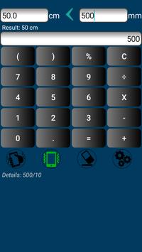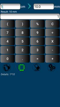 After typing your calculation you can either press equals or shake your device to get the result, and this result will automatically be converted depending on the unit you have chosen to convert.