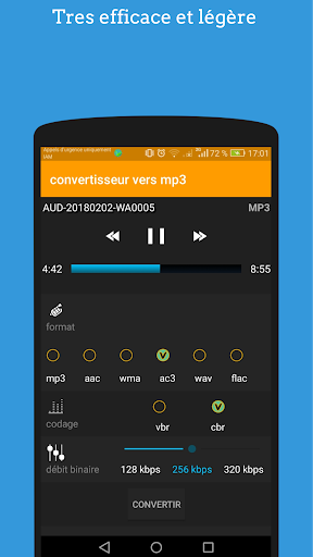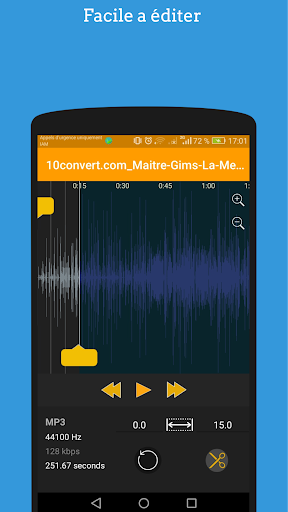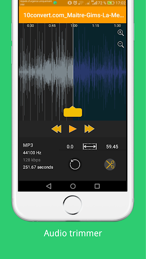 MP3 Converter is really one of the best app converter and cutter audio (ALL types: MP3, WAV……) and videos on the market its free and supports multiple audio and video formats and codifiers. It admits formats MP3, MP4 / MA2, WMA, Ogg Vorbis, FLAC, AAC and is available in several languages.