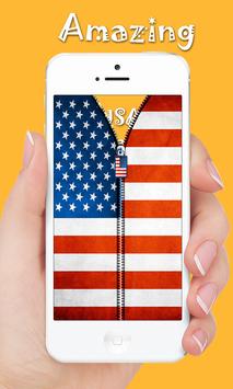 US Flag Zipper Lock Screen Flag Zipper Lock Screen is an app which provides a lock to your mobile screen with the beautiful USA Flag Zipper Lock Screen Flag image on the lock screen.