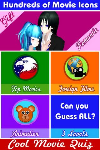 Can you guess all icons of hit movies,animation characters, foreign cine films that you watch and 'one surprise' category and unlock all levels? Hundreds of Stunning Movie Icons from easy 'Argo', tricky 'Pan’s Labyrinth' to hard 'Dilwale Dulhania Le Jayenge'' are ready to be guessed and figured out and many more to come soon..★PURE, instant FUN★No registration, no complicated rules.Just start playing and have fun! Enjoy 1 movie picture 1 word quiz! Win!★HELP WHEN YOU NEED IT★Help When you Need it -Everyone solves puzzles differently. That’s why Cool Movie Quiz has five different help line to help get players back on track from a simple “Resolve” to “Ask your facebook and twitter Friends” all available through points earned with your correct guesses, free token offers or through in-app purchase option.download it now and test your Movie knowledge! Win!★★★ Game lovers, also checkout equally excitingnew app 'COOL GAME QUIZ' by MobileChamps★★★