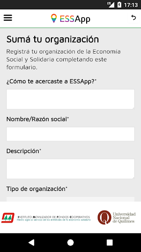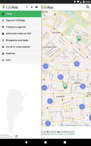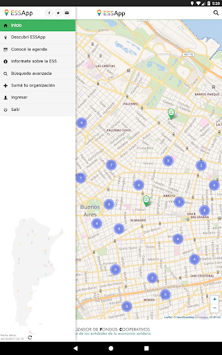 ESSApp es una aplicación móvil para celulares, tablets y otros dispositivos móviles de y para la Economía Social y Solidaria, con un mapa de toda la Argentina donde se podrá buscar cooperativas, federaciones, organizaciones de la comunicación y la cultura popular, ferias, emprendimientos y otras experiencias de la Economía Social y Solidaria.