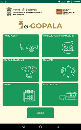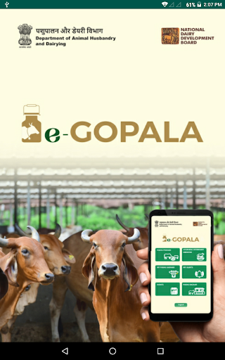 e-GOPALA provides platform to farmers in the country for managing livestock including buying and selling of disease free germplasm in all forms (semen, embryos, etc); availability of quality breeding services (Artificial Insemination, veterinary first aid, vaccination, treatment etc) and guiding farmers for animal nutrition, treatment of animals using appropriate ayurvedic medicine/ethno veterinary medicine. There is a mechanism to send alert (on due date for vaccination, pregnancy diagnosis, calving etc) and inform farmers about various government schemes.