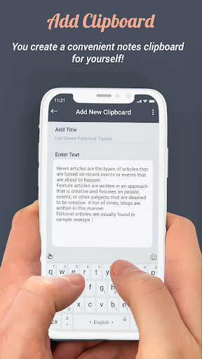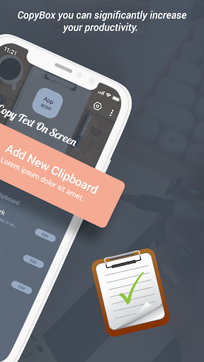 Copy Text On Screen or Clipboard notes is an application allow user to copy paste anywhere, manage, edit, delete clip easy from clipboard. If you need to type or paste somewhere the same texts and notes, then this app is best for you. CopyBox app is designed for quick insertion into the input field of previously prepared text. It can be your signature, greeting, a simple note, and indeed anything.