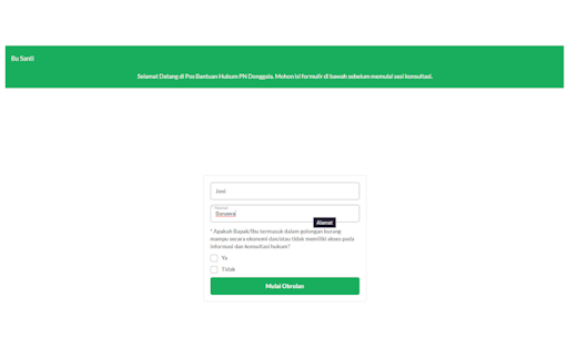 Dịch vụ này được thực hiện bởi Tòa án quận Donggala hoàn toàn được thực hiện bởi chức vụ trợ giúp pháp lý của Tòa án quận Donggala. Tất cả các cuộc tham vấn được trình bày là ý kiến của chuyên gia tư vấn pháp lý liên quan và không phải là ý kiến chính thức của tổ chức.