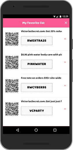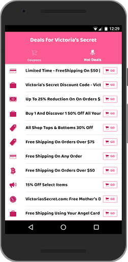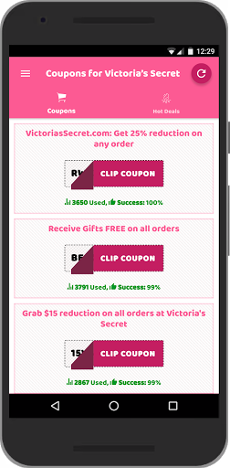 You will find in this useful app many Smart Coupons, promo codes, discounts and great deals for victoria’s secret. Save your time, money and efforts in searching for special discounts, deals, promos codes and digital coupons for victoria’s secret before you go shopping.