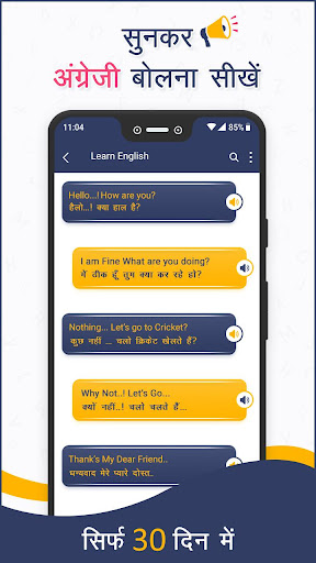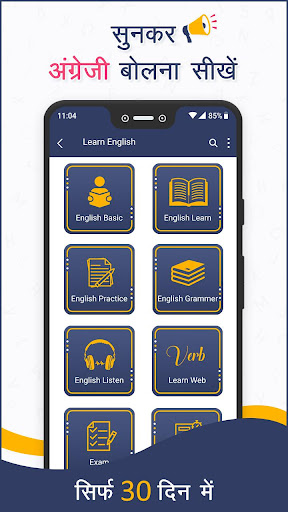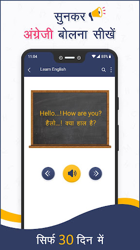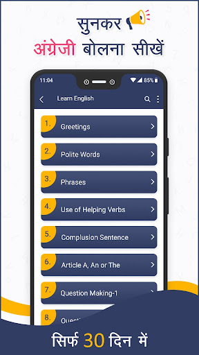 English speaking course app for spoken English, grammar, and vocabulary building. 30 Days Me Sunkar English Bolna Sikhe app teaches you English in the Hindi language.