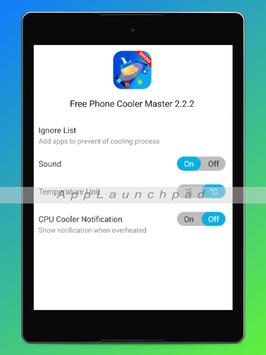 Cooling Master max pro, is the best android phone cooler free app that's going to help you cool down your phones heat temperature . Cooling master max pro app is going to cool down your android phone is just seconds to make it run smooth and fast again . The Master cooling pro app is a Professional heat cooling app that moniters the usage of your cpu and as soon as your android phone starts to heat app due to the usage of alot of apps at the same time , cooling master app starts cooling your cpu and cleans the ram at the same time to make your phone runs fast again . If you have an android phone with a high temperature start using our free cooling master max pro app to reduce the heat of the cpu of your android phone to make is run fast and cool in just seconds