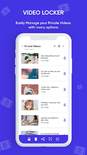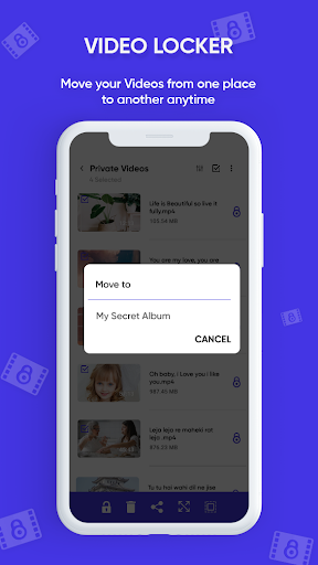Keep your videos secure and hidden with video Locker. video Locker is the most effortless and most secure approach to make a safe area on your device to store and ensure your own/significant recordings. Your private and delicate videos were spilled out and spread outside is incredibly risky with this application nobody can get to hided recordings since it's currently scrambled and application.