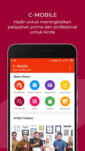 C-Mobile merupakan aplikasi mobile yang dikembangkan oleh Creative Media untuk Anda, dengan fitur pendaftaran online melalui aplikasi, reminder berupa notifikasi untuk Siswa dan Trainer, bursa kerja dll agar lebih dekat.