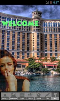 Superimposed text (English) on any portion of photos or images, while choosing the font and text color.