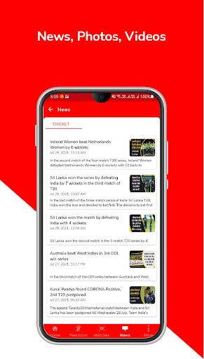 • Categorized match schedule(Date-wise, Series-wise & Team-wise)