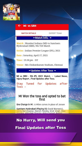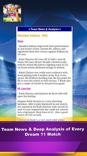 We always strive to make one of the best app for fantasy sports expert predictions and forecasts, if you have any feedback to improve the app further or new feature requests to make the app even more user friendly and awesome, reach out to us using the email mentioned on the play store. We take user feedback very seriously to make our apps wonderful.