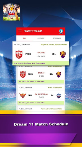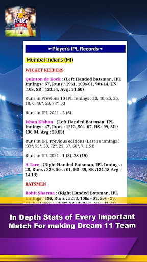Dream 11 IPL 2022 (Indian Premier League) Prediction and other fantasy sports with detailed analysis for every sport. This is all in one team selection app you will need to play fantasy games on My Fab 11, My 11 Circle, Ballebazi etc.